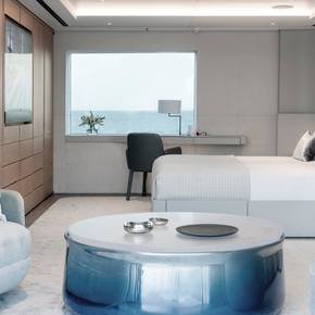 Entourage, beş geniş kamarasında toplam 12 konuğu ağırlayabiliyor. Master süit, VIP kabinler ve konforlu çift kişilik kamaralar; şıklık, mahremiyet ve rahatlığı bir arada sunuyor. İç mekânlarda açık tonlar, doğal dokular ve panoramik camlar sayesinde ferah bir atmosfer hâkim.